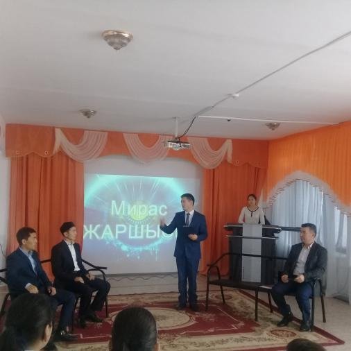 түскендей өкінішті сезесің. Бұған кімді кінәлаймыз, адамды ма, әлде қоғамды ма?. Осы орайда Бурабай аудандық «Рухани келісім» іс-шарасы аясында №9 мектеп-гимназиясында қазан айының 20 –жұлдызы күні «Дін және қоғам» тақырыбында «Мирас жаршысы» ток шоуы өтті. Ток шоуға аудандық мешіттің наиб имамы Ұлан және мешіт жамағаты, жеке кәсіпкер Жанат Қорқытбаев, АӘД мұғалімі Жанболат Шайменов мырза қатысты. Келген қонақтар дін